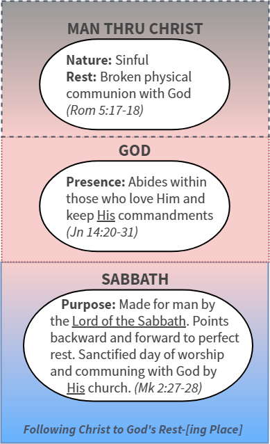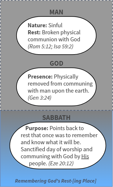 The Sabbath day observance continues and points man back to the rest that once was and will one day be again in the future. It serves as the sanctified day of worship and communing with God by His people each week.6