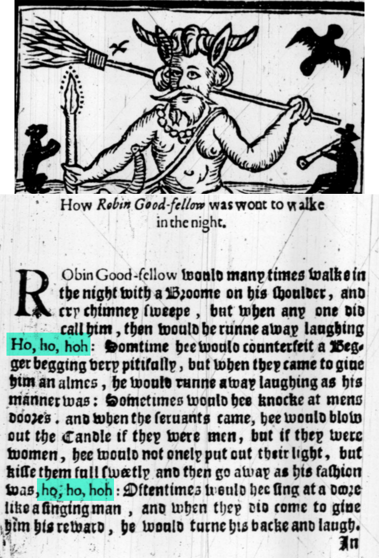 Santa’s trademark “ho, ho, ho” comes from the laugh of a devilish character named Robin Goodfellow in a 1600s fable.