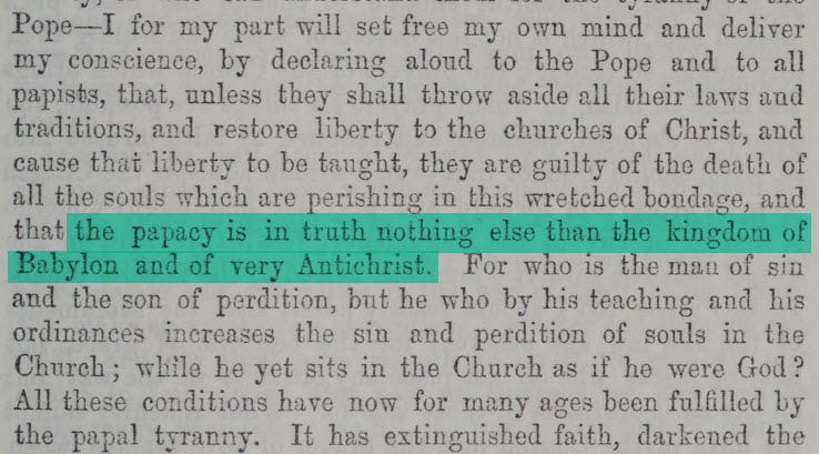 “the papacy is in truth nothing else than the kingdom of Babylon and of very Antichrist.”