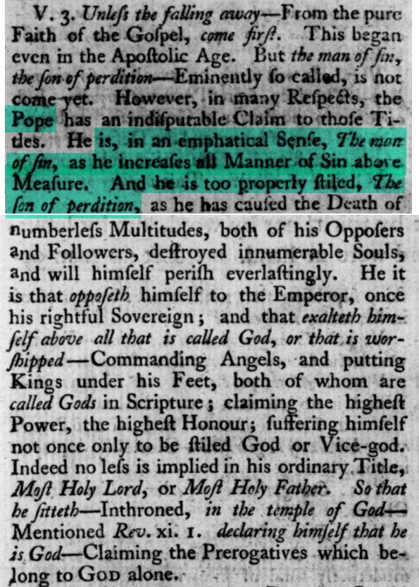“[the Pope] is, in an emphatical sense, the man of sin, as he increases all manner of sin above measure. And he is too properly styled, the son of perdition...”