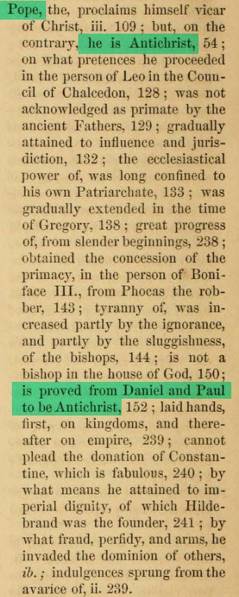 “Pope, the, proclaims himself vicar of Christ, but, on the contrary, he is Antichrist”