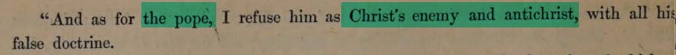“And as for the pope, I refuse him as Christ’s enemy and antichrist, with all his false doctrine.”
