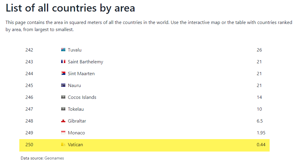 It is also smaller in geographic size than other world kingdoms. Wikipedia states the following concerning Vatican City: