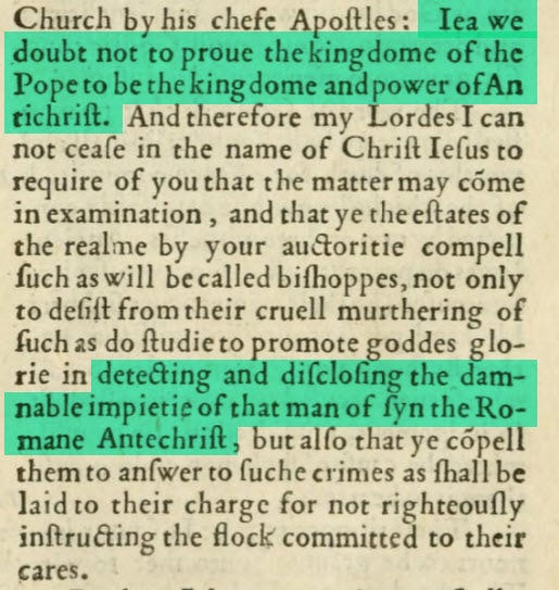 “Yea we doubt not to prove the kingdom of the Pope to be the kingdom and power of Antichrist. … in detecting and disclosing the damnable impiety of that man of sin the Roman Antichrist,”