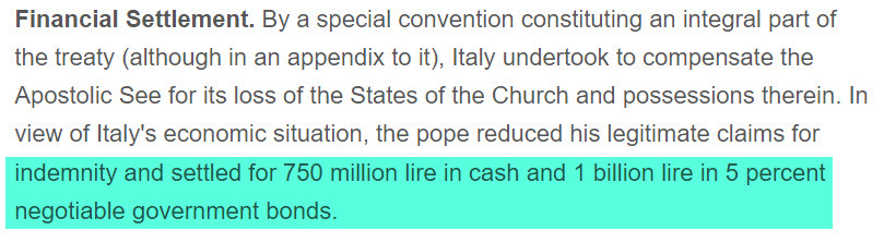 Land and great sums of money were also given to the Catholic church as part of this treaty: