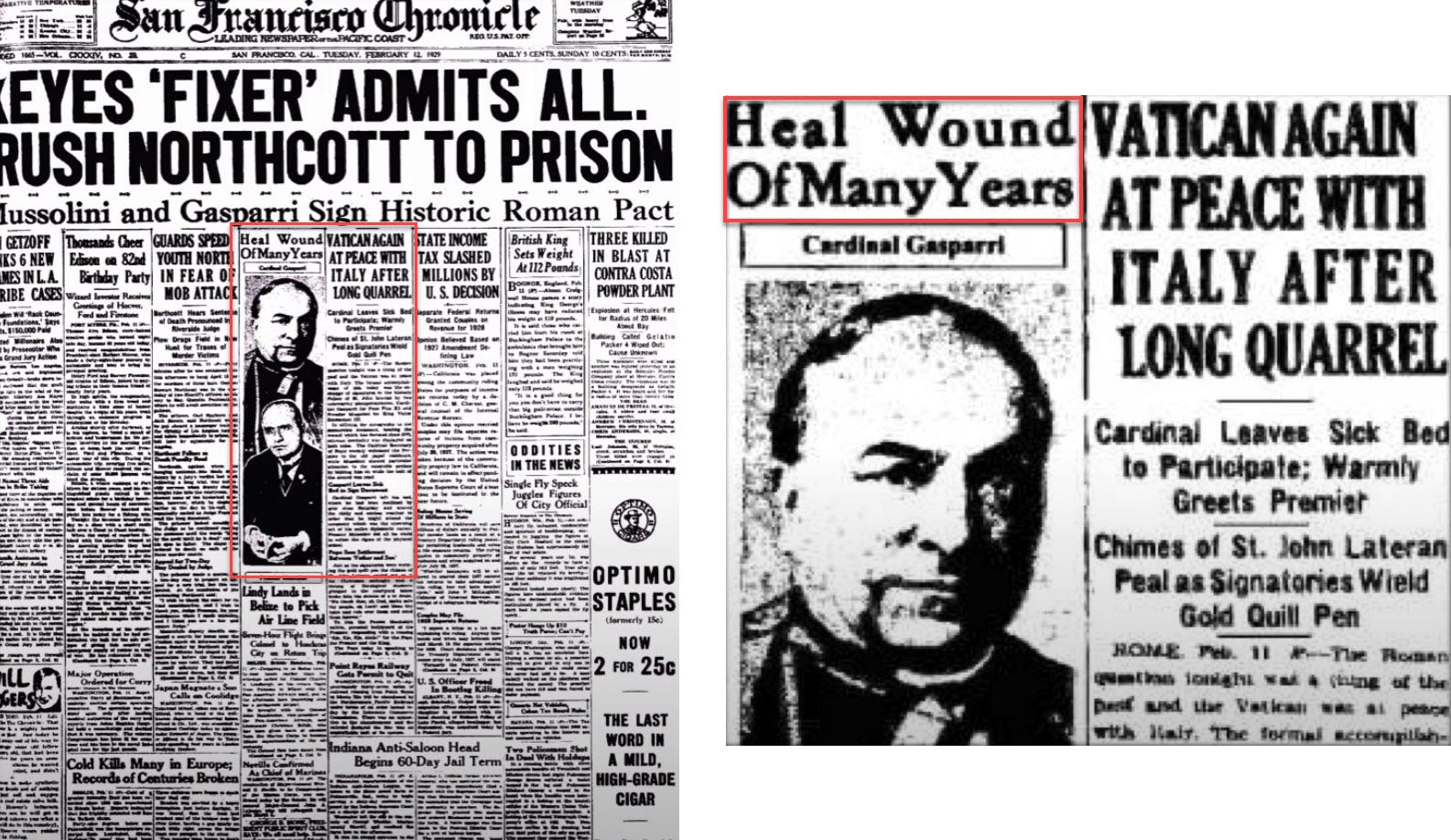 The San Francisco Chronicle declared the wound as healed on February 12, 1929: