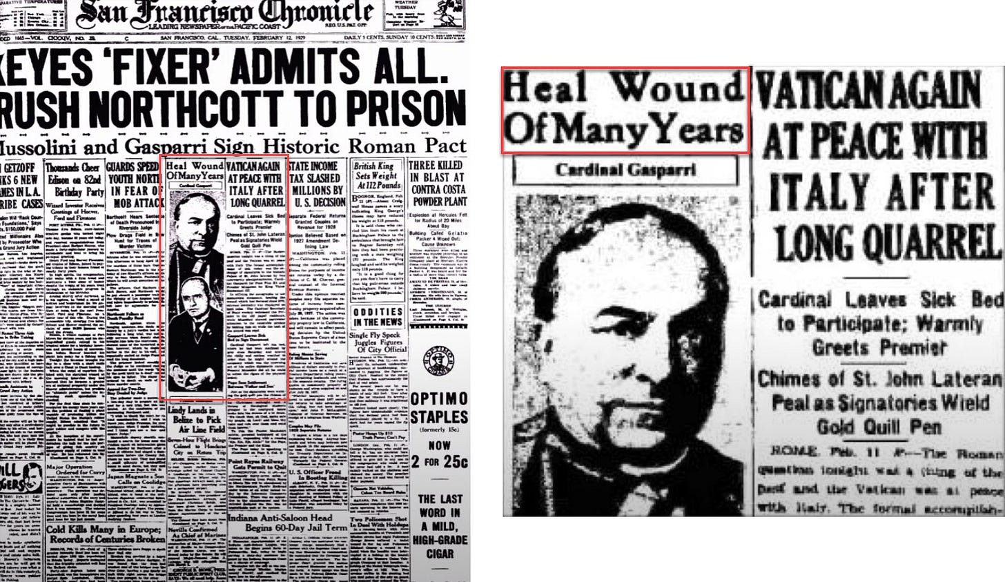 In 1929, the deadly wound to the papacy was healed as part of the Lateran Treaty.