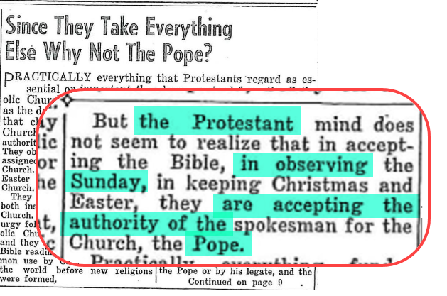 Since the beginning of the Roman Catholic church, it has been ruled by the seat of a single man known as the pope/papacy. This chain will remain unbroken until the time of Christ’s return. The men in this seat have taken blasphemous titles and practices upon themselves, have attempted to change the ten commandments of God, and have moved the sanctity of the 7th day Sabbath to Sunday. The title on the triple crown of the Pope is VICARIUS FILII DEI, meaning vicar (or in place of) the Son of God. In Roman numerals, the numerical value of this Latin title adds up to 666.