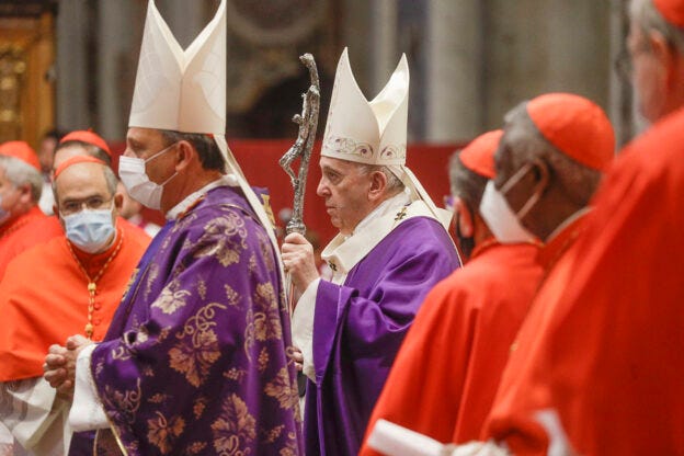Catholic bishops dress themselves in purple: